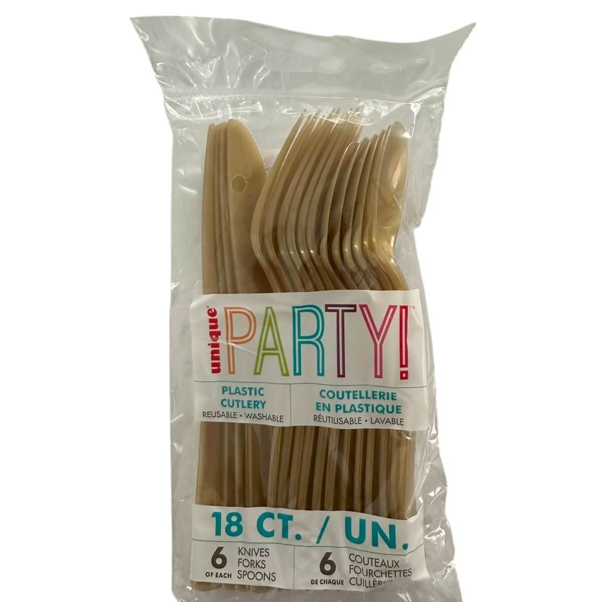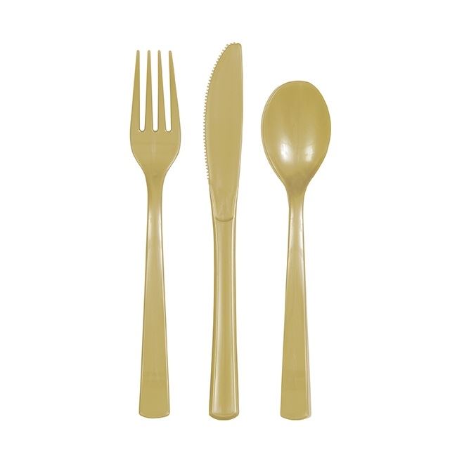 El dorado metálico imita el acabado de los cubiertos reales, pero con la comodidad del plástico. Además, su diseño es resistente y cómodo para todo tipo de platos.