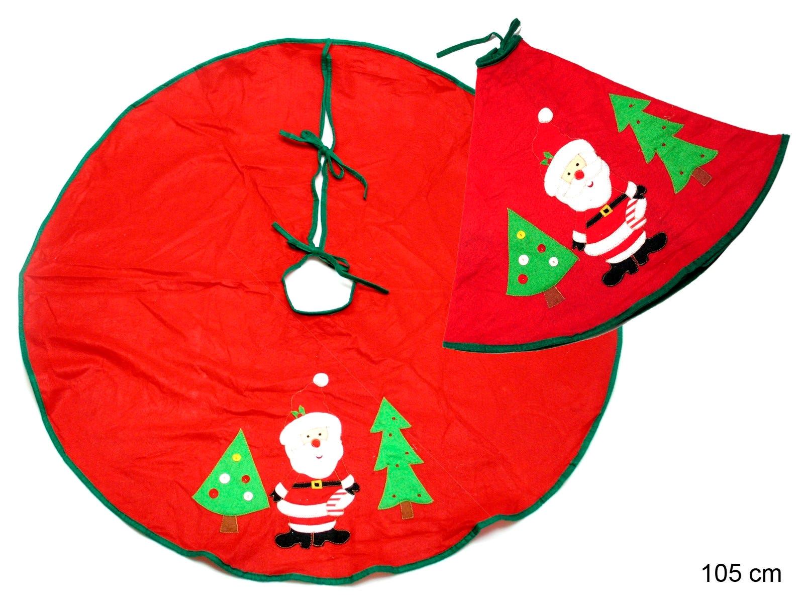 Pie de Árbol navideño en fieltro de color rojo con la imagen de un divertido Muñeco de Nieve. Ideal para decorar el árbol de Navidad y darle un toque especial. Mide 105 X 105 X 0,10 CM
