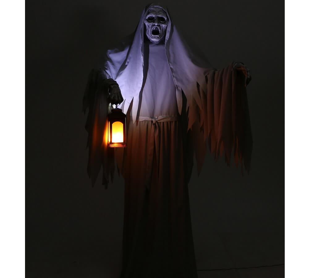 ¿Buscas una figura grande y aterradora para decorar tu fiesta de Halloween? Este espectro animatrónico con farol es la opción perfecta para impresionar a tus invitados y crear un ambiente tenebroso e inolvidable.