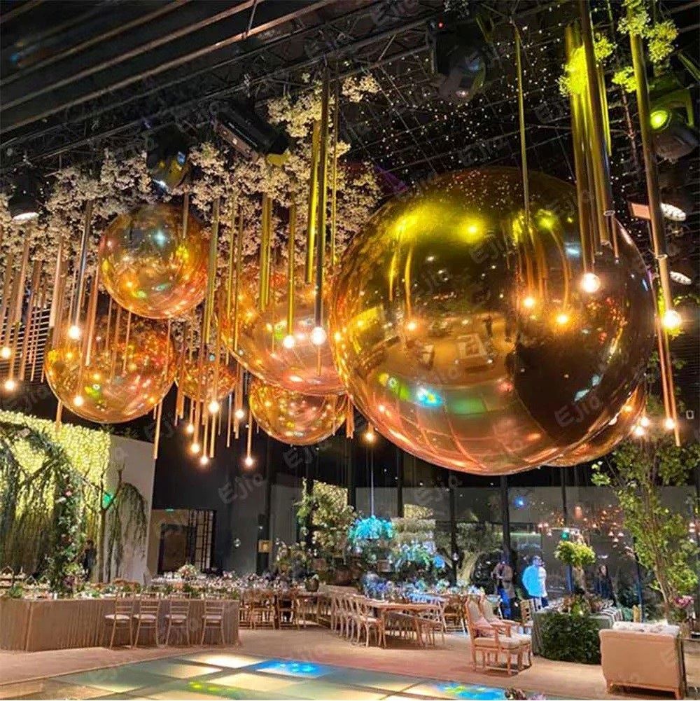 • Las Mirror Balls doradas reutilizables, también conocidas como bolas espejo, son decoraciones elegantes y llamativas para eventos sofisticados como bodas, fiestas y exhibiciones de arte. Con un acabado espejado y reflectante, estas esferas doradas añaden un toque de lujo a cualquier ambiente, reflejando la luz de forma espectacular. Su gran tamaño y diseño liviano permiten usarlas tanto en interiores como en exteriores, creando una atmósfera moderna y glamorosa. Perfectas para destacar en cualquier celebración o espacio comercial.