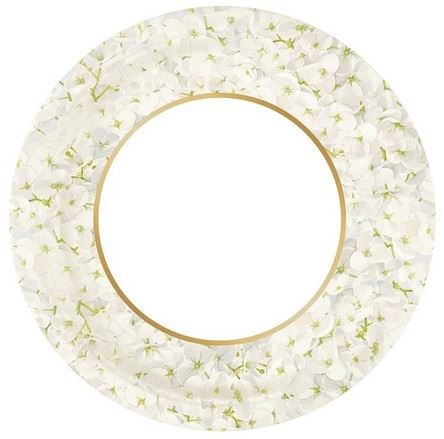 Platos de cartón con un diseño muy bonito con hortensias y tono dorado. Miden aprox 23cm. Contiene 8 platos