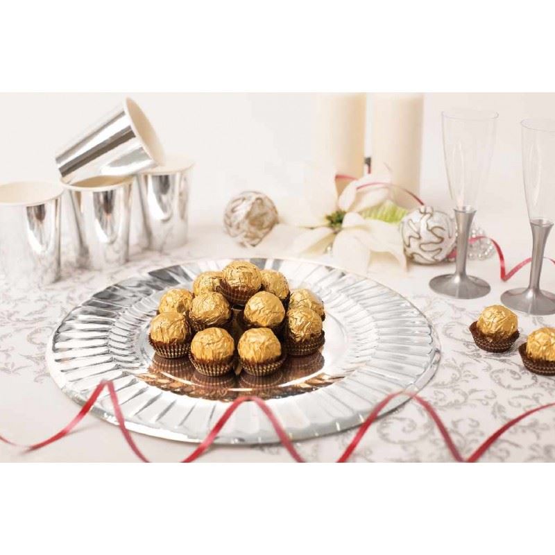 ¿Tienes una fiesta temática “Hollywood”, “años 20” o “espacio”? Estos platos plateados encajan a la perfección con ese estilo brillante y sofisticado.