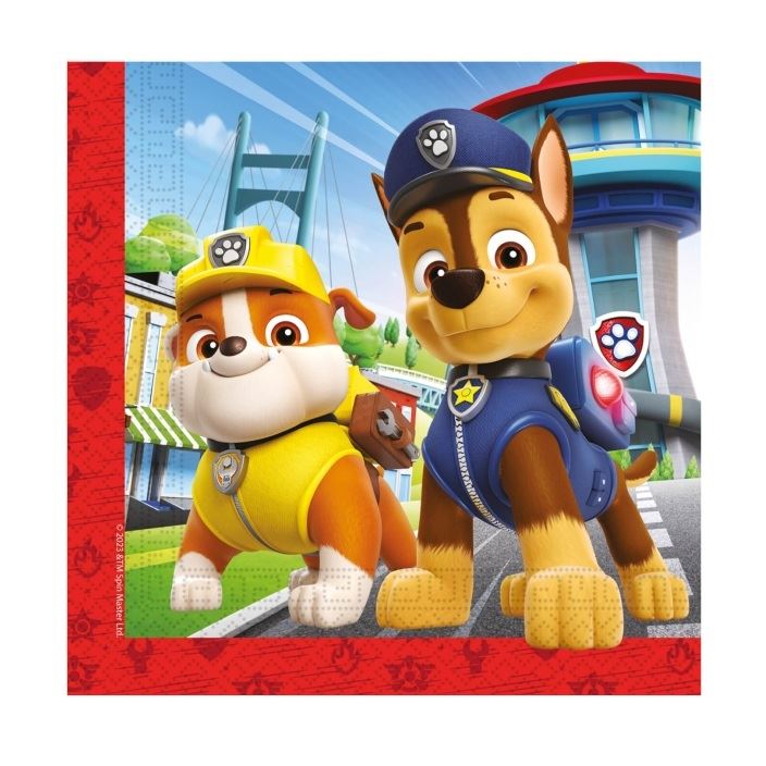 🐾 Servilletas Patrulla Canina (20 uds – 33 cm) | Dale un toque canino a tu fiesta ¡Que no falte el toque divertido en la mesa! Estas servilletas de papel con diseño oficial de la Patrulla Canina son perfectas para cumpleaños infantiles llenos de color y aventura. Con Chase y Rubble como protagonistas y un fondo rojo súper llamativo, serán un éxito total entre los peques.