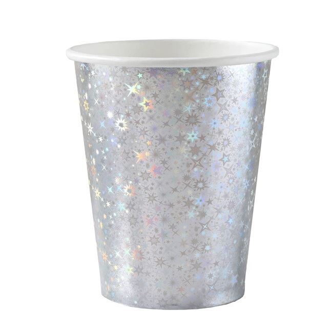 Vasos plateados Sparkling de cartón son la elección ideal para tus eventos. Ya sea para cumpleaños, celebraciones, Navidad o Año Nuevo. Contienen 10 unidades. Capacidad 270ml